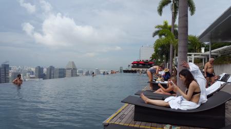 Nach einem erholsamen Schlaf geniessen wir den tollen Pool auf der Plattform des Marina Bay