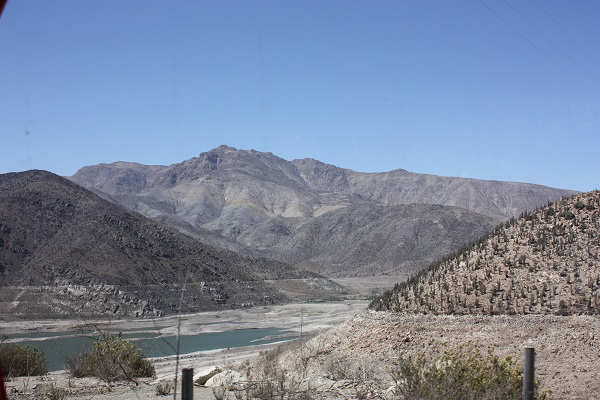 In unserem ersten "port of call" machen wir uns auf zu einem Ausflug ins Elquital. Der Stausee von Elqui der auf dem Bild zu sehen ist, war ein bekanntes Wassersportgebiet. Nach drei Jahren ohne nennenswerte Niederschläge ist der See aber nahezu verschwunden.