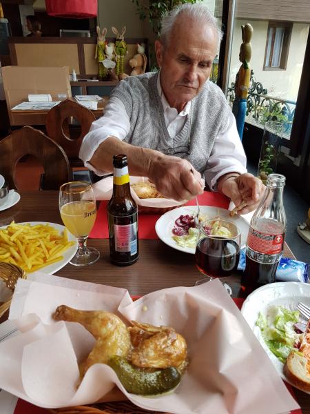Nach der Fahrt über die leere Autobahn in Italien und der minimalen Kontrolle am Zoll, geniessen wir ein tolles Poulet im Restaurant Pouletburg in Attinghausen