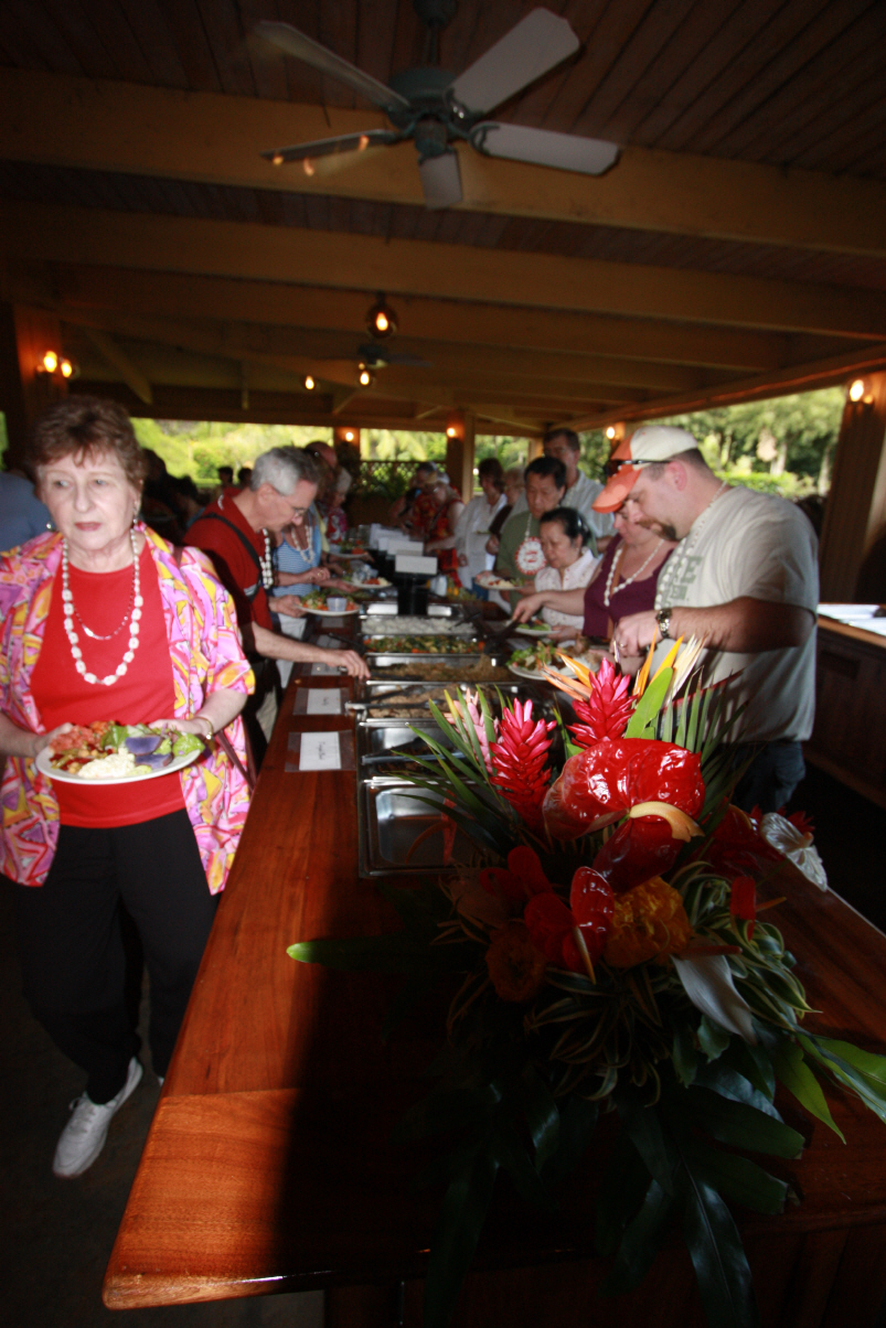 Danach wird das Festessen mit Salaten und Desserts vervollständigt, Wein und Mai Tai ein einheimischer Rum - Mix - Drink gehören dazu. Die grosse Familienfeier kann beginnen, zu speziellen Anlässen werden diese Luaus zubereitet.