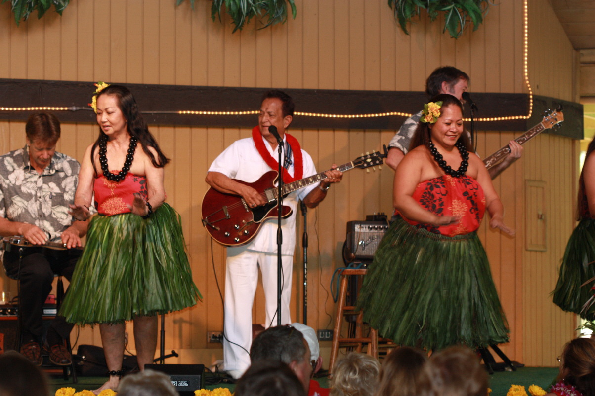 Nach dem feinen Essen beginnt die Zeremonie, dazu Lieder, einheimische Tänze und für uns beide Orchiden-Leis.