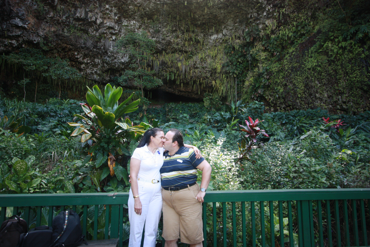 Im Fern Grotto angekommen gehts durch den grünen Regenwald und vielen Blumen zum Grotto. Dort spielt eine Hawaii Band den Weddingsong. Was wir Verliebten uns dabei ins Ohr flüstern, ist und beibt unser Geheimniss