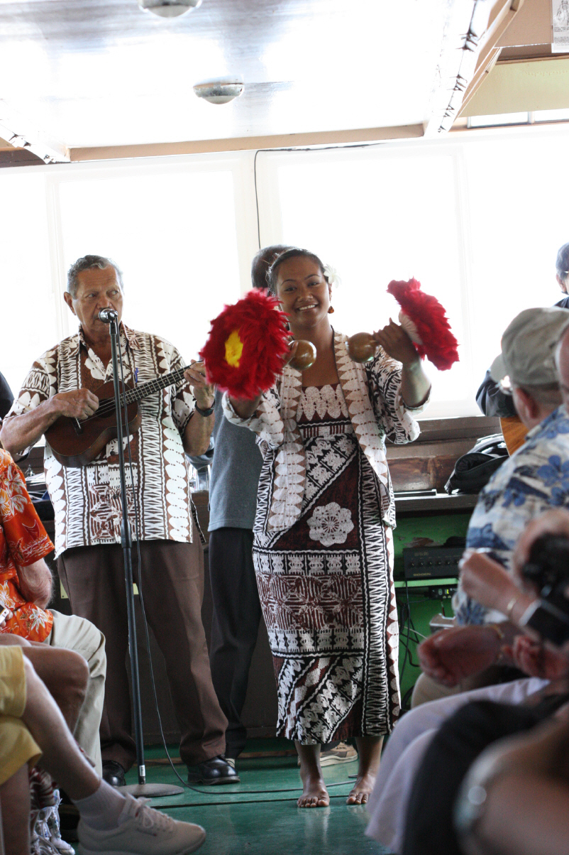 Mit dem Boot, viel Tanz und Musik gehts zurück. Wo uns ein Luau Festessen mit der anschliessenden Hochzeitszeremonie erwartet.